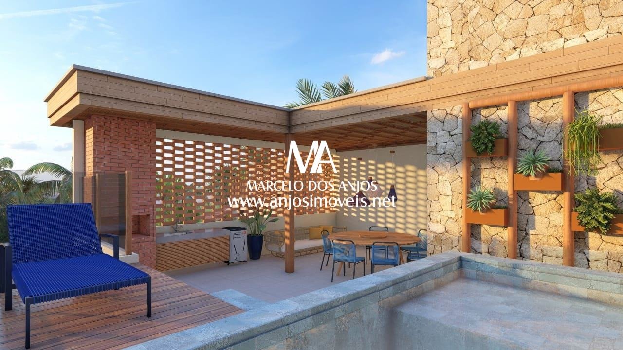 100m2, 02 suítes, piscina privativa, 01 lavabo, sala e cozinha americana.